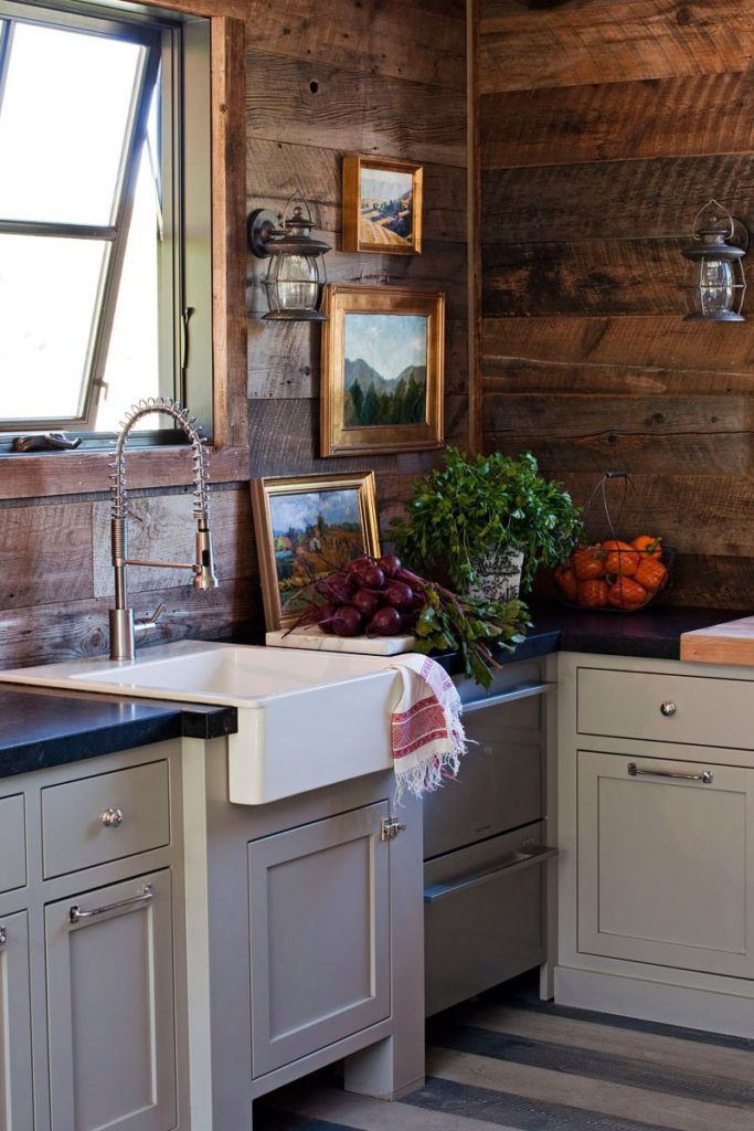 Warm up a cabin-style kitchen with walls in reclaimed wood. Extend them to your backsplash and its full-on rustic charm.